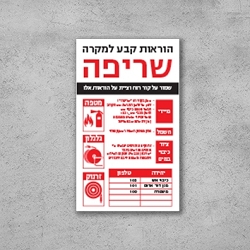 הוראות קבע למקרה שריפה גודל 50/30 סמ - מקט 3224