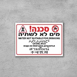 סכנה מים לא לשתיה 6 שפות גודל 30/20 סמ - מקט 2608